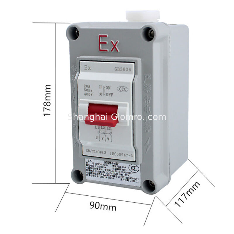 | Markeren: | explosiebestendige luchtschakelaar 20A,Exde IIC T6 industriële schakelaar,IP65 druk-trekluchtschakelaar |